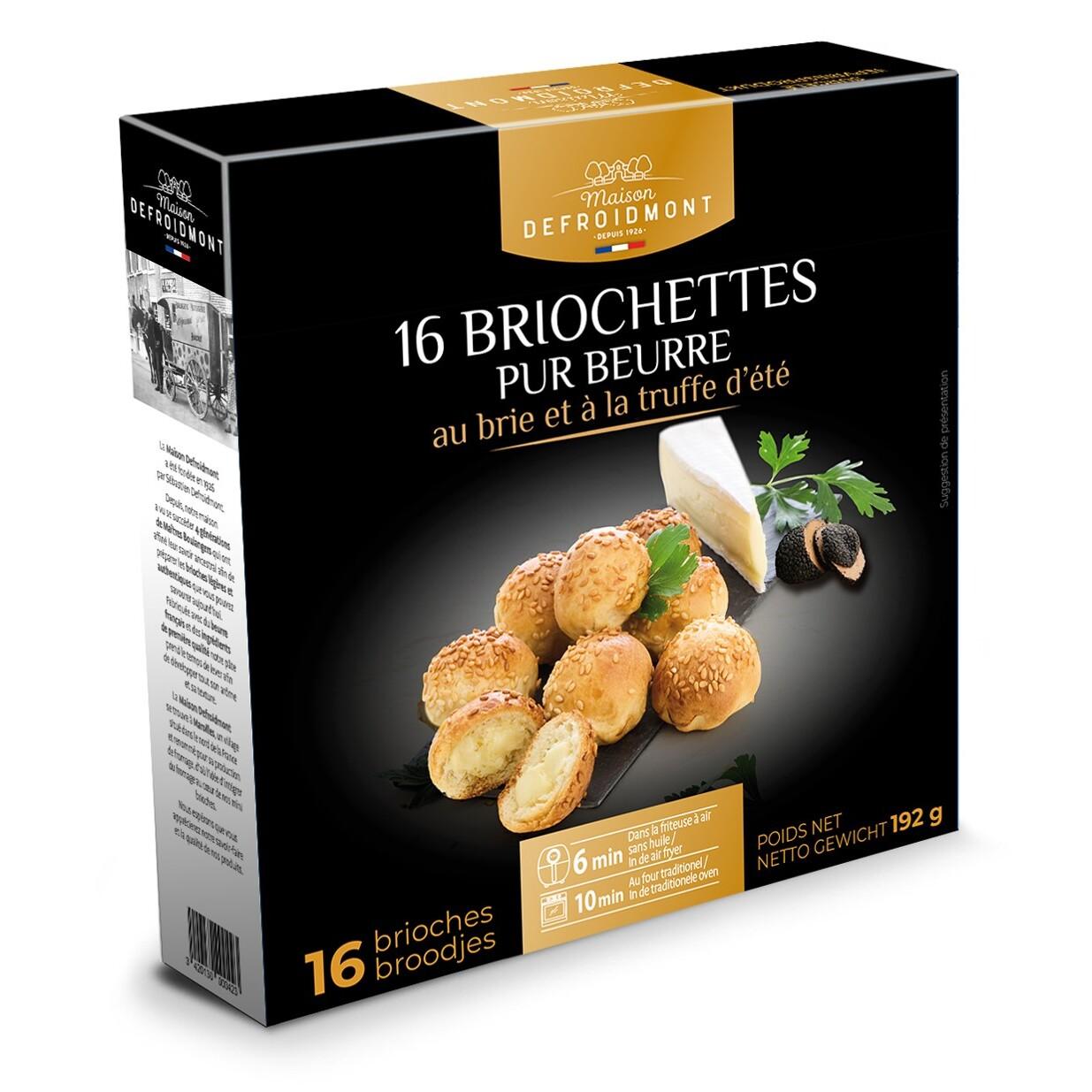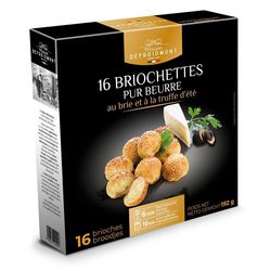 Brioches fourrées d'une préparation de crème à base de Brie et de Truffes d'été (Tuber aestivum) (1%), aromatisées, surgelées.