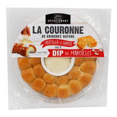 Après décongélation. Préchauffez votre four traditionnel 10 minutes Th6 (180°C). Retirez le film plastique, enfournez la couronne en laissant la coupelle de crème de Maroilles au milieu pendant 10 minutes à 180°C.