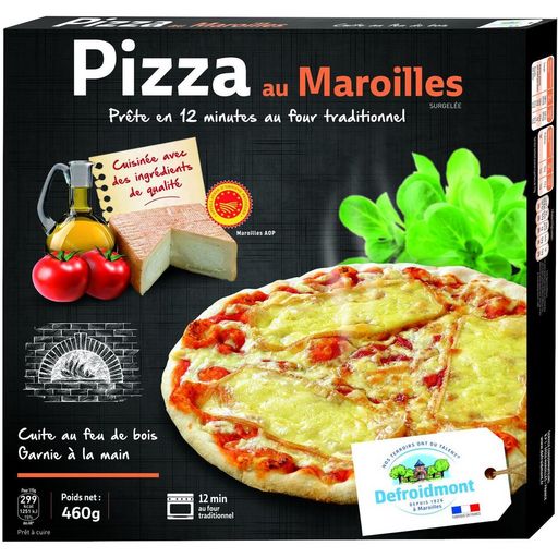 Pizza cuite au feu de bois garnie de sauce tomate et de Maroilles Pizza au Maroilles 460G Defroidmont