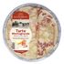 Une tarte généreuse avec une pâte au beurre garnie de raclette et de lardons cuits fumés.