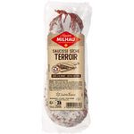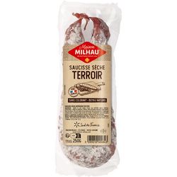 viande de porc, sel, LACTOSE, épices, dextrose, conservateur: E252, arômes, arôme de fumée, ferments, boyau naturel, fleur de surface.