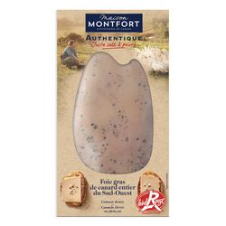 "Avec Authentique de Maison Montfort, notre savoir faire met à l'honneur nos foies gras du Sud-Ouest. Découvrez notre foie gras de canard entier du Sud-Ouest Label Rouge, dans une recette juste salé et poivré pour manifier le foie gras de la plus simple des façons. Nos foies gras sont élaborés avec minutie tout au long de leur fabrication : de la sélection de nos foies à la main jusqu'à la cuisson douce pour préserver leurs saveurs et révéler leur texture fondante Provenant de notre coppérative de producteurs, nos canards sont élevés dans le Sud-Ouest au sein d'exploitations à taille humaine dans une rayon de 250km autour de notre atelier de fabrication. "