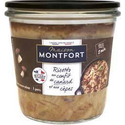 Préparation de riz cuit, effiloché de viande de canard confite et de cèpes RISOTTO AU CONFIT DE CANARD ET AUX CEPES BOCAL 320G