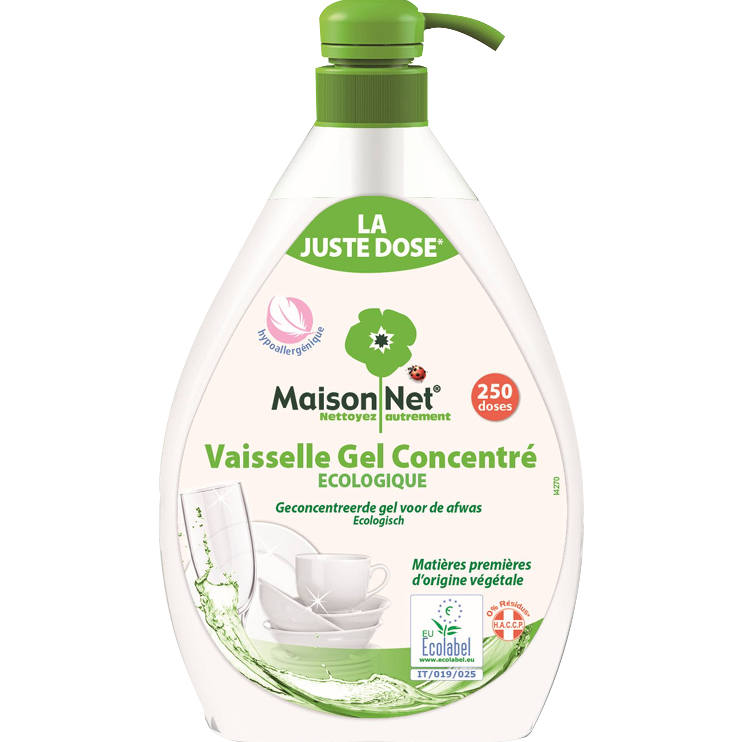 PRODUIT ECOLABELLISE AYANT UN IMPACT REDUIT SUR L'ENVIRONNEMENT LIQUIDE VAISSELLE JUSTE DOSE POUR UNE ECONOMIE AU QUOTIDIEN DEGRAISSE ET NETTOIE TOUTE VOTRE VAISSELLE HYPOALLERGENIQUE ATIERES PREMIERES D'ORIGINE VEGETALE VAISSELLE GEL MAISON NET ECOLABEL 1L