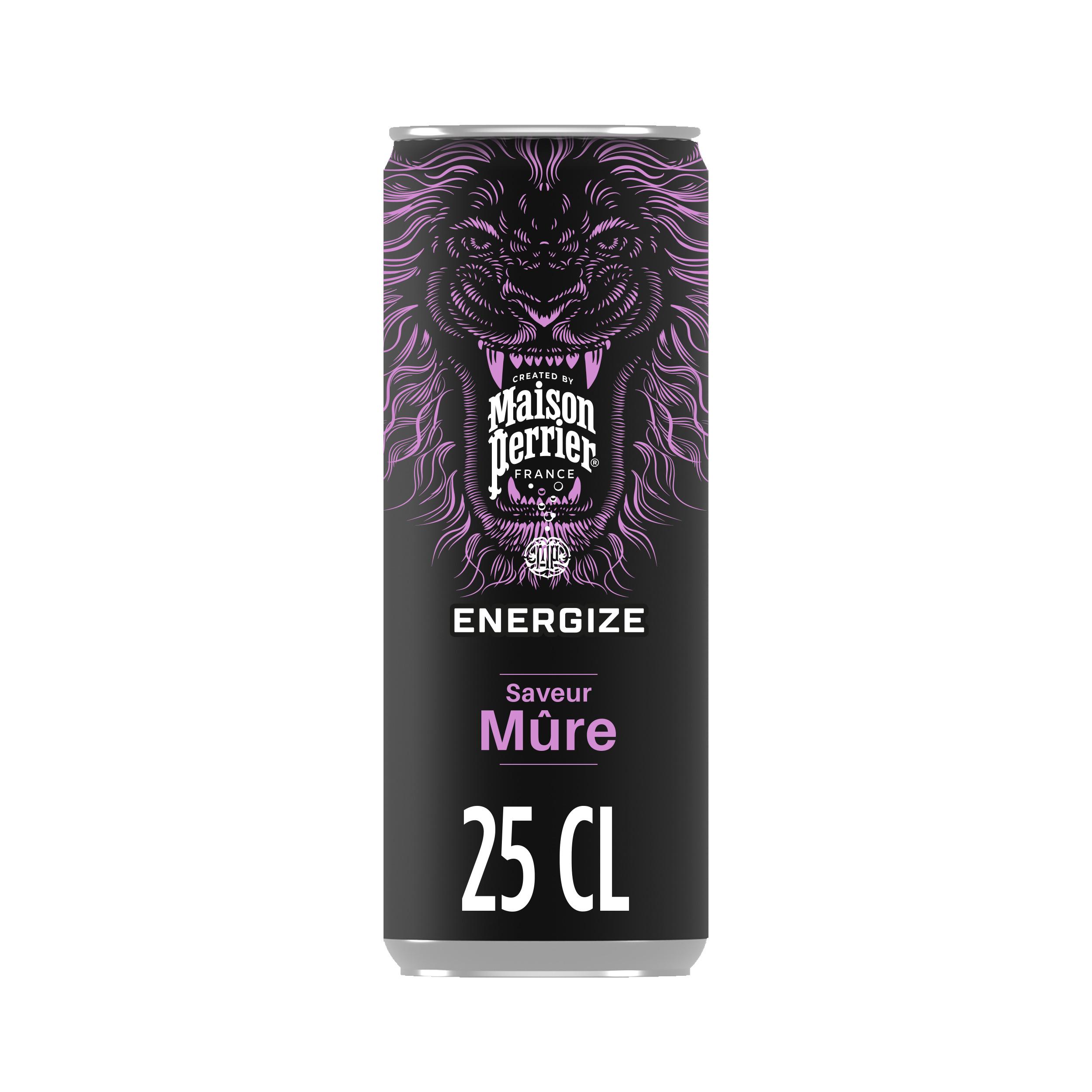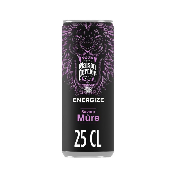 Boisson énergisante pétillante et infusion intense de thé vert, riche ne vitamines B1, B3 et B6, saveur mûre.