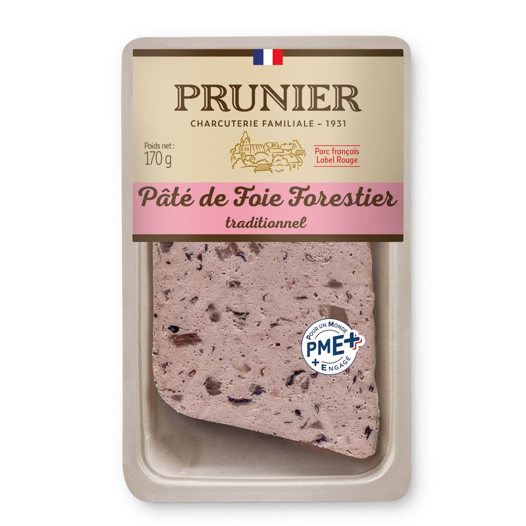 Le pâté de foie forestier traditionnel Prunier est élaboré avec du porc français Label Rouge
