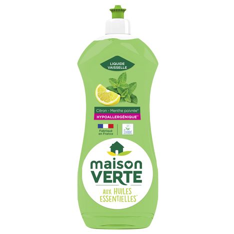 Maison Verte Liquide Vaisselle - Citron Menthe poivrée 750ml EFFICACITÉ > Le liquide vaisselle Maison Verte Citron Pamplemousse* vous apporte une efficacité optimale grâce à ses agents nettoyants d’origine végétale lorsque vous nettoyez votre vaisselle. Ultra-dégraissant, il dissout la graisse rapidement et laisse votre vaisselle propre. HYPOALLERGÉNIE > La formule du liquide vaisselle Maison Verte Citron Pamplemousse est testée sous contrôle dermatologique en dilution. Hypoallergénique, elle a été développée pour minimiser les risques de réactions allergiques. PARFUMS AUX HUILES ESSENTIELLES > Son délicat parfum Citron Pamplemousse aux huiles essentielles* a été développé avec des grandes maisons de parfum pour vous offrir un moment de lavage agréablement parfumé. ECOLABEL > En utilisant ce produit porteur du label écologique de l’Union Européenne conformément aux recommandations de dosage, vous contribuez à réduire la pollution de l’eau, la production de déchets et la consommation d’énergie. RECYCLAGE > Nos emballages de liquide vaisselle sont recyclables et sont composés de 25% de matière recyclée.