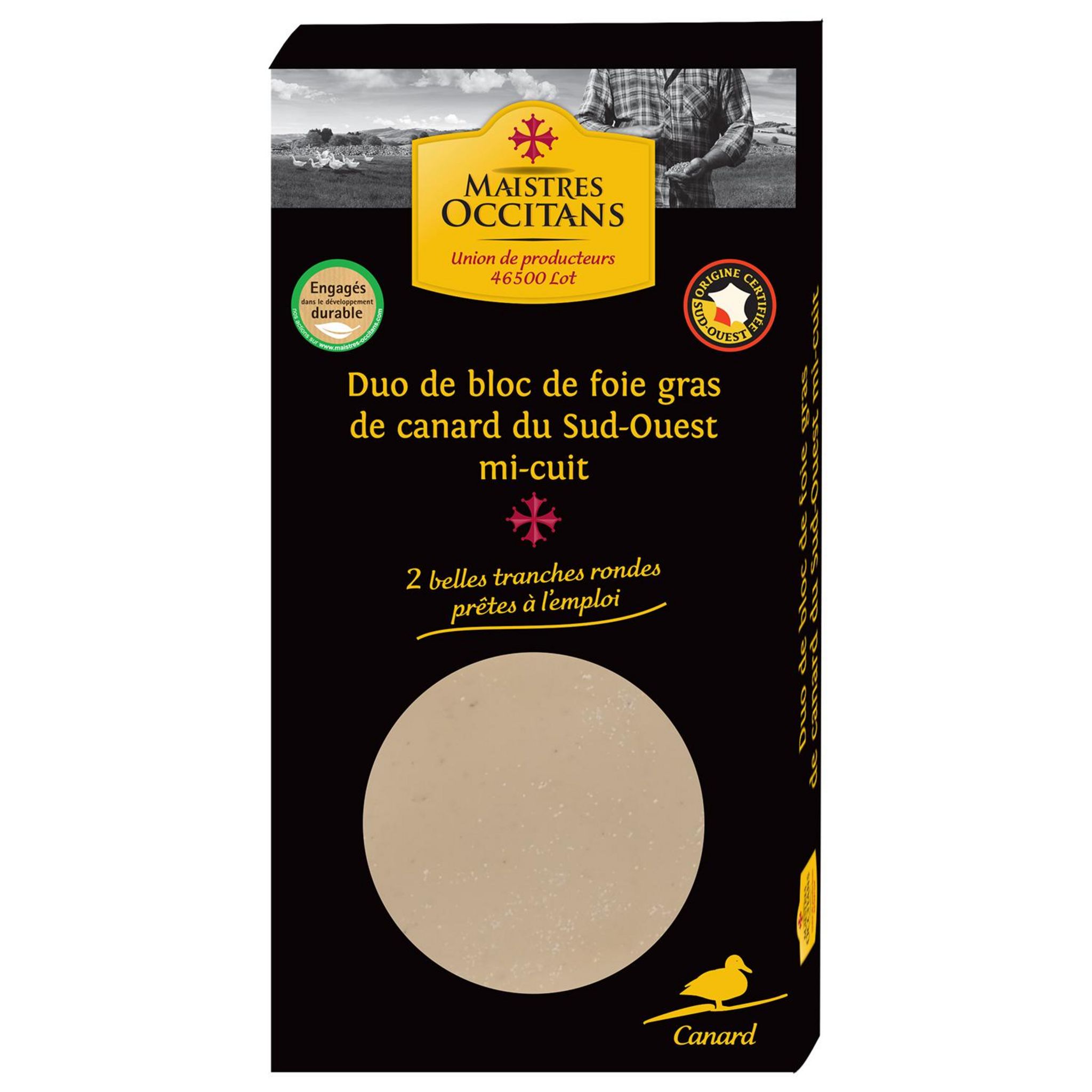 DUO DE BLOCS DE FOIE GRAS DE CANARD DU SUD OUEST 80G MI-CUIT