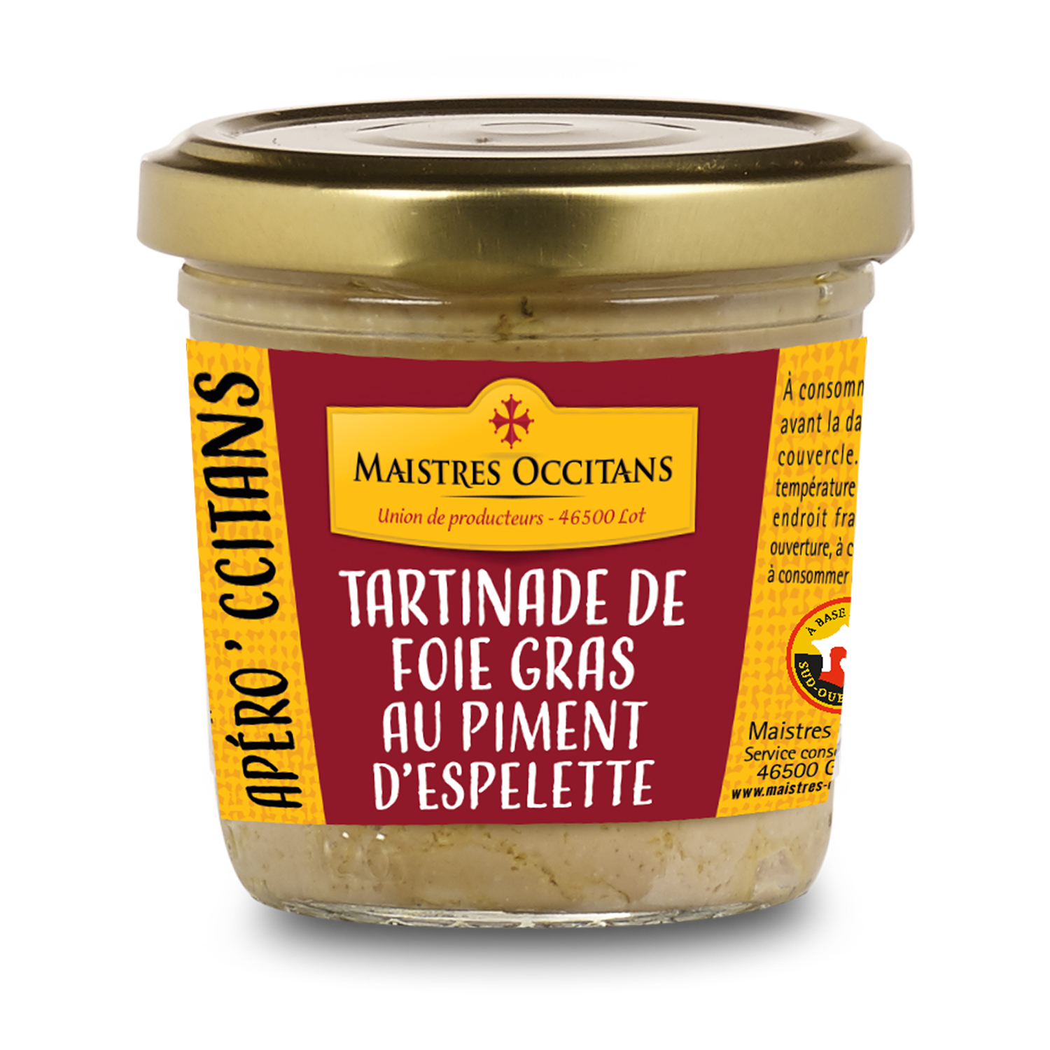 Ingrédients : Foie gras de canard 40%, foie de volaille, graisse de canard, eau, sel, gélatine, piment d'Espelette 0,3%, sucre, poivre, épices, plantes aromatiques, arôme naturel.