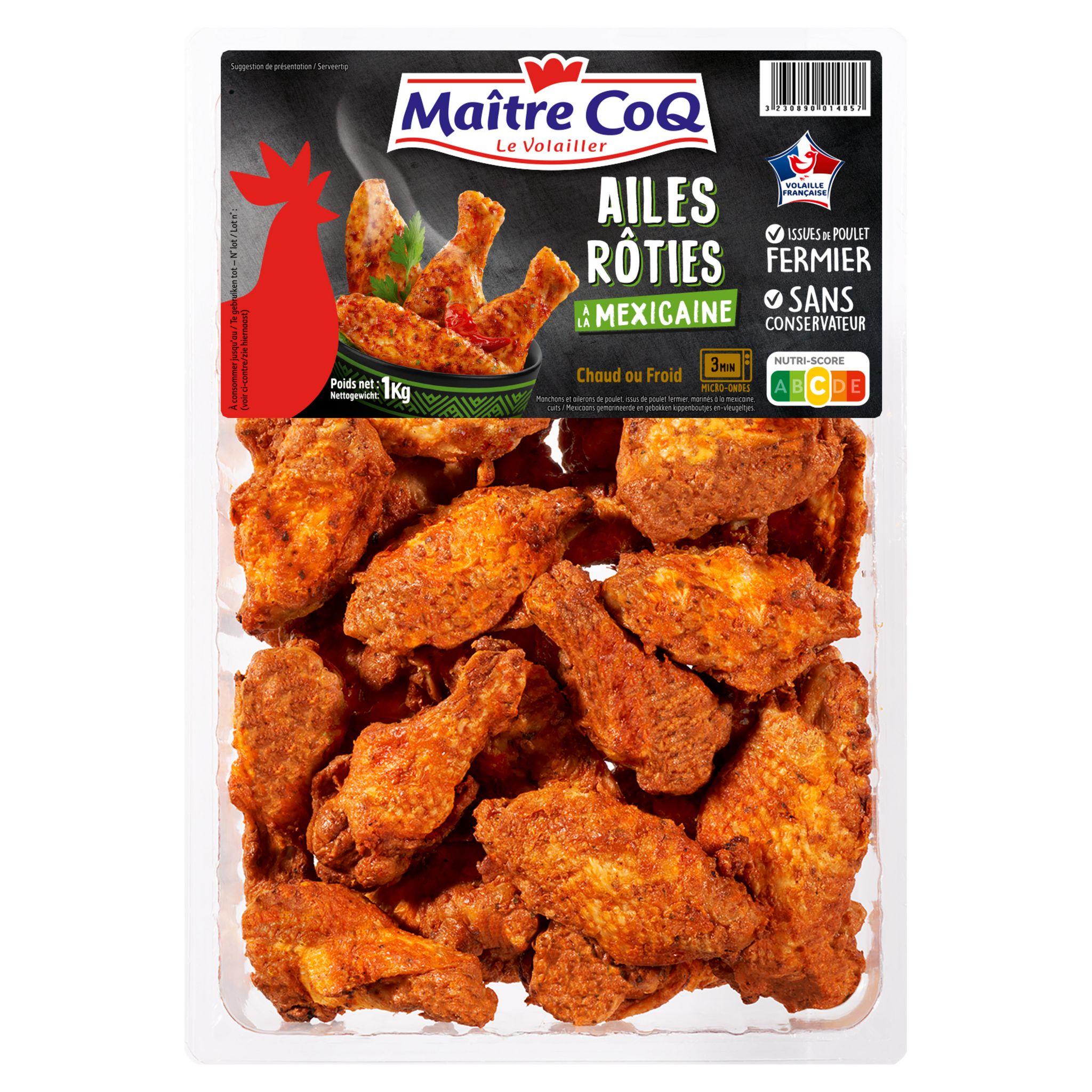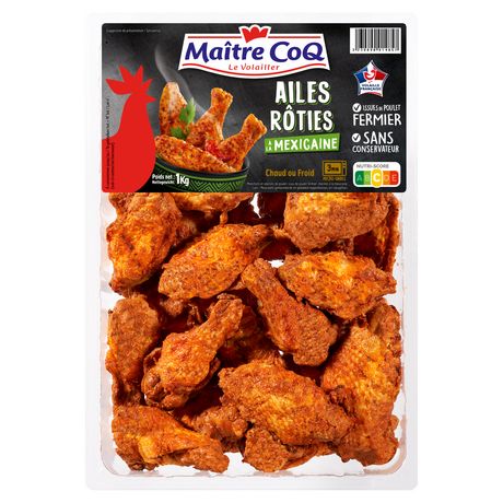 Manchons et ailerons de poulet issus de poulet fermier, marinés à la mexicaine, cuits