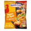 Viandes de poulet et de dinde traitées en salaison,panées, frites, cuites et surgelées.