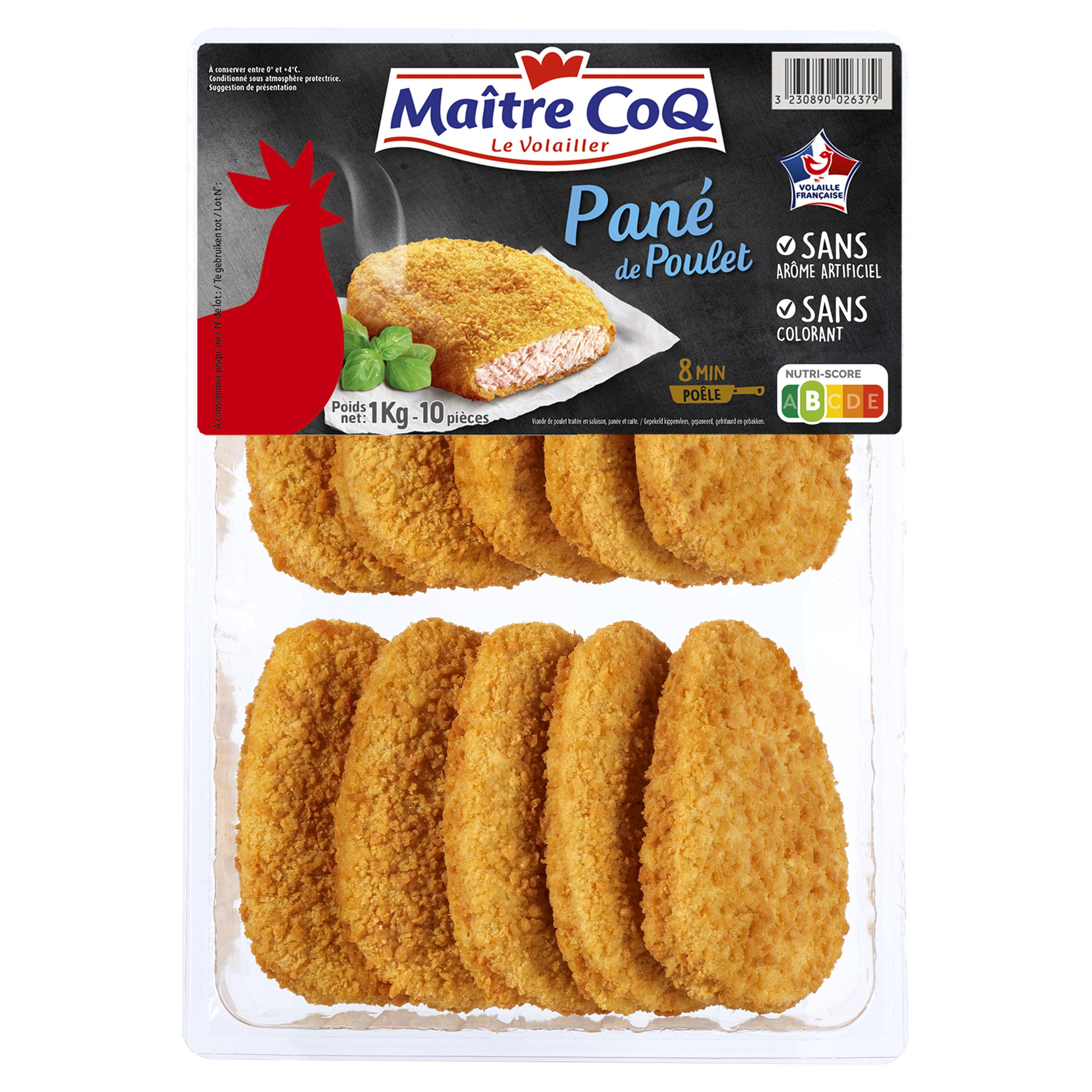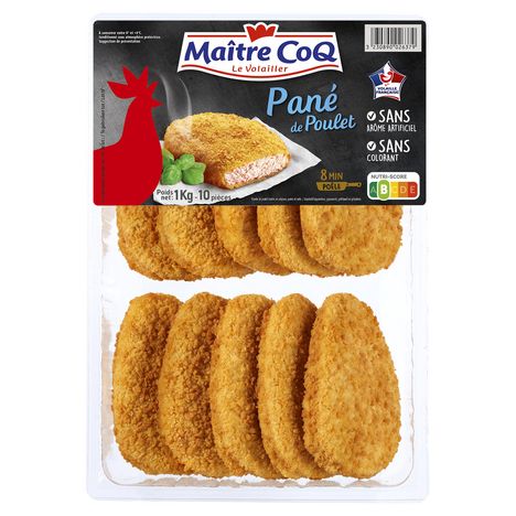 Ingrédients : Viande de volaille traitée en salaison 70% (viande de volaille (viande de poulet 17% (origine : France), viande de dinde 17% (origine : France)), eau, peau de poulet, protéines de SOJA, dextrose, fibre de blé, arôme naturel de poivre avec autres arômes naturels, sel), panure (chapelure (farine de BLE, sel, levure, épices), farine de BLE, sel, arôme naturel). Frit à l'huile de tournesol. Fabriqué dans un atelier qui utilise : lait, oeuf, céleri, moutarde.Présence SOJA BLE