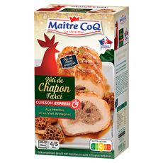 Rôti de chapon farci, farce au vieil Armagnac et avec des morilles 0.3%, cuit.