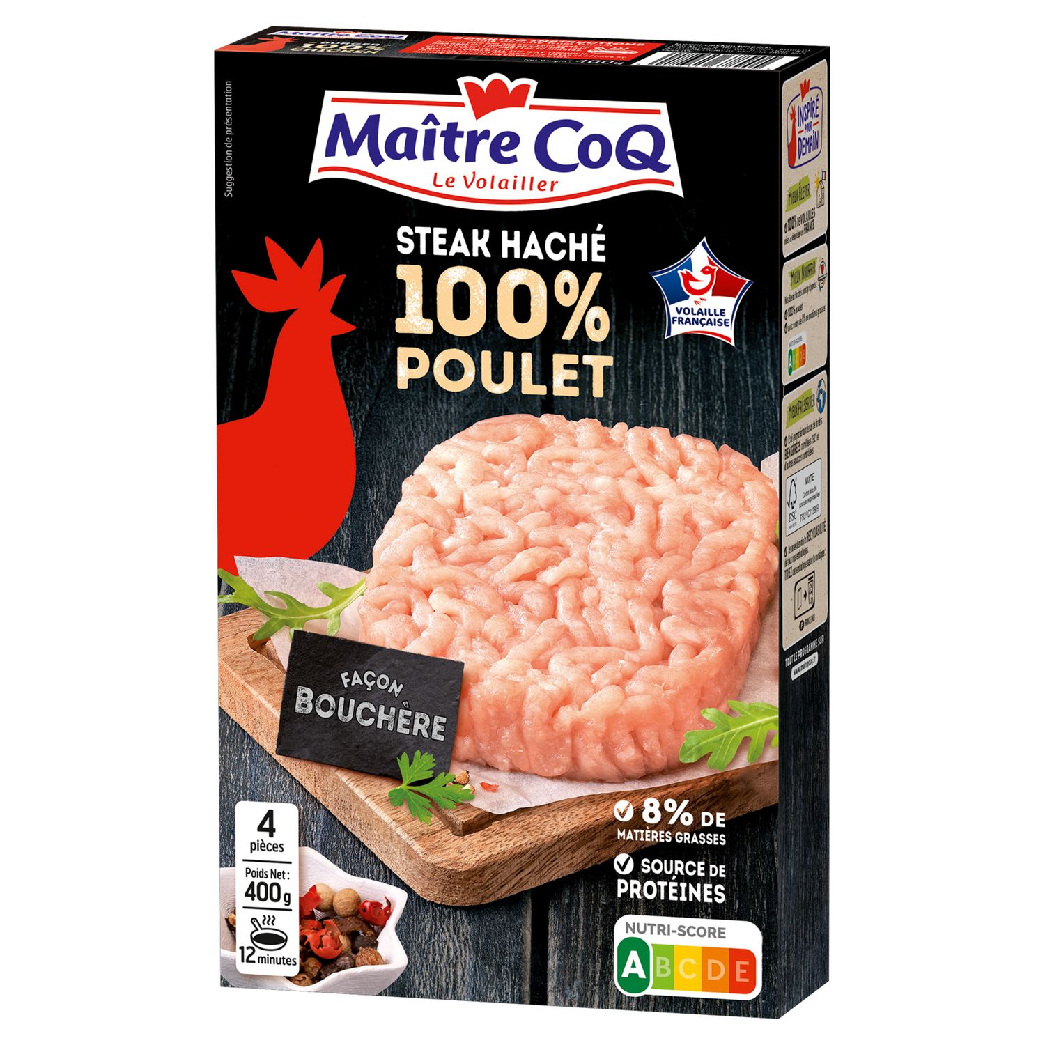 Ingrédients : Viande de cuisse de poulet (origine : France).Pourcentage de matières grasses inféieur à 8%Rapport collagène sur protéines de viande inférieur à 8%