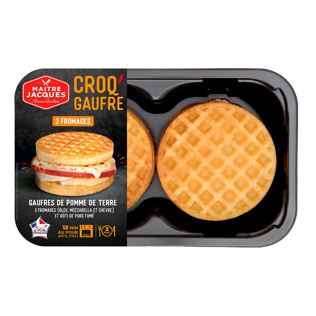 Découvrez notre croq'gaufre 3 fromages, une recette ultra-gourmande élaborée avec des gaufres de pomme de terre, du rôti de porc fumé naturellement au bois de hêtre et de 3 fromages (bleu, mozzarella, chèvre). Facile et rapide à préparer, nos croq' gaufre sont une véritable solution repas pour le quotidien.