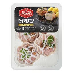Pour les fêtes, laissez-vous tenter par nos paupiettes de porc morilles et foie gras ultra-gourmandes élaborées à partir de viande de porc française, soigneusement montées à la main et ficelées melon.