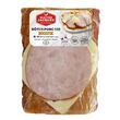 Filet de porc saumuré 89% (Filet de porc 98%, sel, acidifiants : E326 et E301, dextrose, sucre, sirop de glucose, conservateur : E250 et arômes), FROMAGE 8% (FROMAGE fondu (FROMAGES (LAIT), eau, amidons modifiés, BEURRE (LAIT), protéines de LAIT, LAIT écrémé en poudre, sel de fonte E331, colorant E160a) et EMMENTAL), bacon (viande de porc 96%, sel, antioxydant : E326 et E301, dextrose, conservateurs : E262, E252 et E250, sucre, épice et plante aromatique).