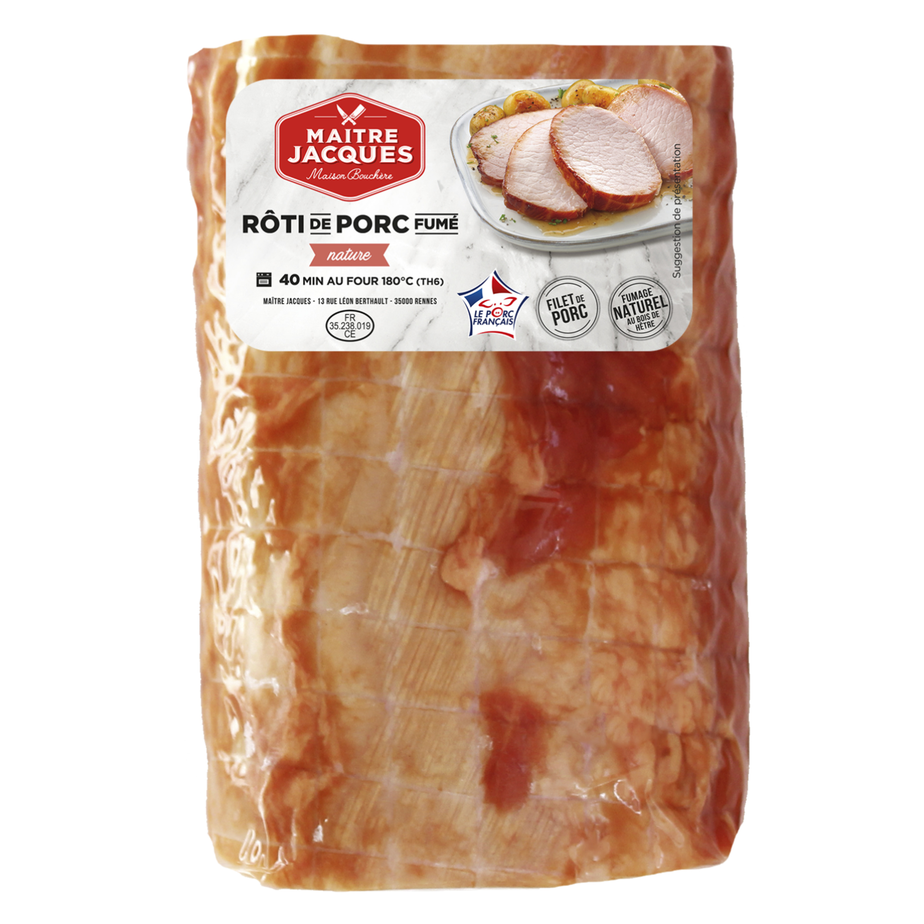 Maître Jacques vous propose un rôti de porc fumé, une recette authentique élaborée avec de la viande de porc française fumée naturellement au bois de hêtre.