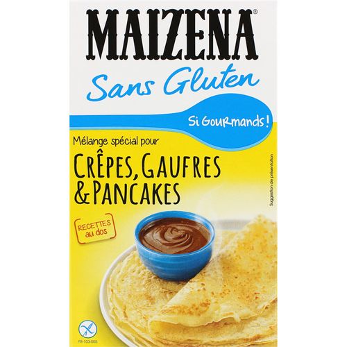 Le sachet de 510 g du mélange sans gluten Maizena permet de réaliser 32 crêpes ou 20 gaufres ou 36 pancakes.