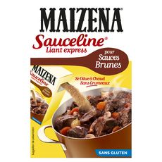 Conseils d'utilisation • POUR UN PLAT EN SAUCE (bœuf bourguignon, lapin en sauce, rôti, sauté de veau marengo...) 4 personnes En fin de cuisson, portez le plat à ébullition. Ajoutez 4 cuillères à soupe de Sauceline® pour Sauces Brunes MAIZENA® (32 g). Mélangez et laissez mijoter 1 minute à feu doux. • POUR UNE VIANDE ROUGE À LA POÊLE 4 personnes Lorsque la viande est cuite, retirez-la de la poêle. Versez 250 ml de liquide (eau, bouillon, vin...) dans la poêle sur les sucs de cuisson. Ajoutez 2 cuillères à soupe de Sauceline® pour Sauces Brunes MAIZENA® (16 g) dans le liquide bouillant. Mélangez et laissez mijoter 1 minute à feu doux. • POUR LIER OU RATTRAPER UNE SAUCE (sauce madère, sauce au vin, sauce au poivre, sauce bolognaise...) 4 personnes Portez la sauce à ébullition, puis ajoutez 4 cuillères à soupe de Sauceline® pour Sauces Brunes MAIZENA® (32 g) pour 1/2 litre de liquide. Mélangez à l'aide d'un fouet et laissez mijoter 1 minute à feu doux. Astuces • Si votre sauce est trop liquide, ajoutez 1 à 2 cuillères à soupe de Sauceline® pour Sauces Brunes MAIZENA® supplémentaires. • Si votre sauce est trop épaisse, ajoutez un peu de liquide pour la rendre plus fluide. 1 DÉCOLLEZ DANS CE SENS. 2 RETIREZ ENTIÈREMENT LA LANGUETTE.