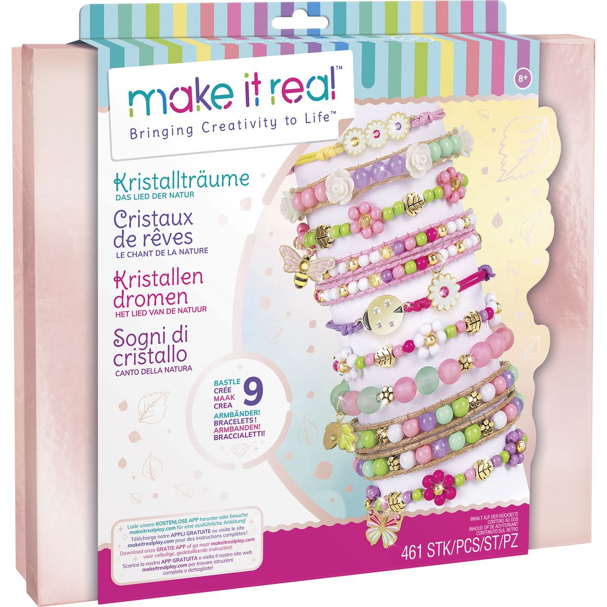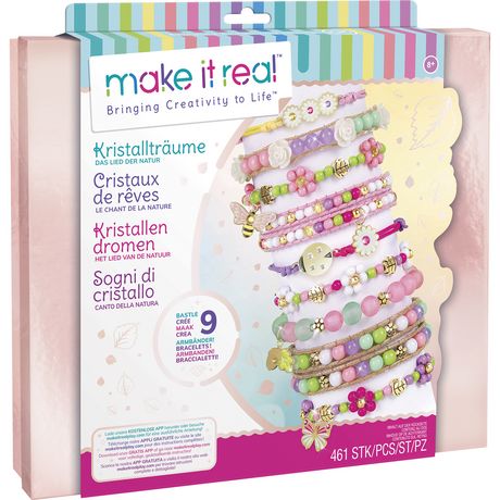 Crée 9 bracelets cristaux uniques avec ce coffret aux couleurs printanières. Tu pourras mêmes réutiliser la boite pour mettre tes bijoux ! Dès 8 ans.