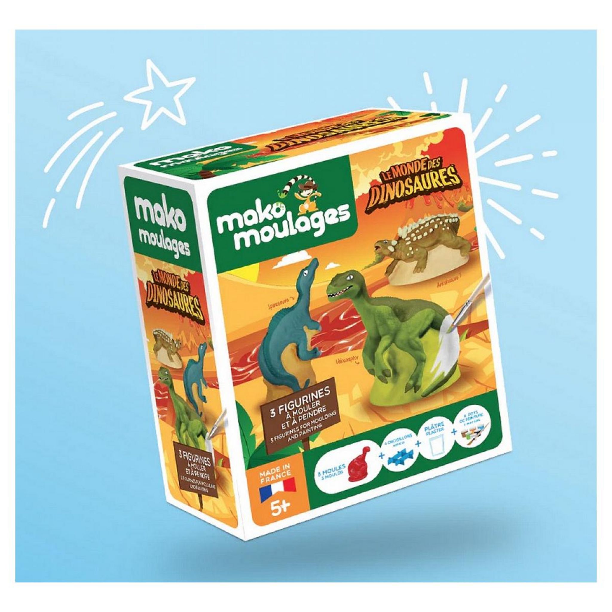 Avec ce kit créatif mako moulages, adopte ta famille de dinosaures, en moulant et en décorant 3 nouveaux dinosaures du clan des dinos mako moulages ! Décore-les avec les 6 pots de peinture et laisse ton imagination donner vie à tes créations ! Dans le monde merveilleux de mako, l'ankylosaure, le spinosaure et le vélociraptor vivent en harmonie et font partie du même clan. Le clan des dinosaures en plâtre et en couleurs ! Découvre ces 3 nouveaux dinosaures pour compléter ta gamme de dinosaures !