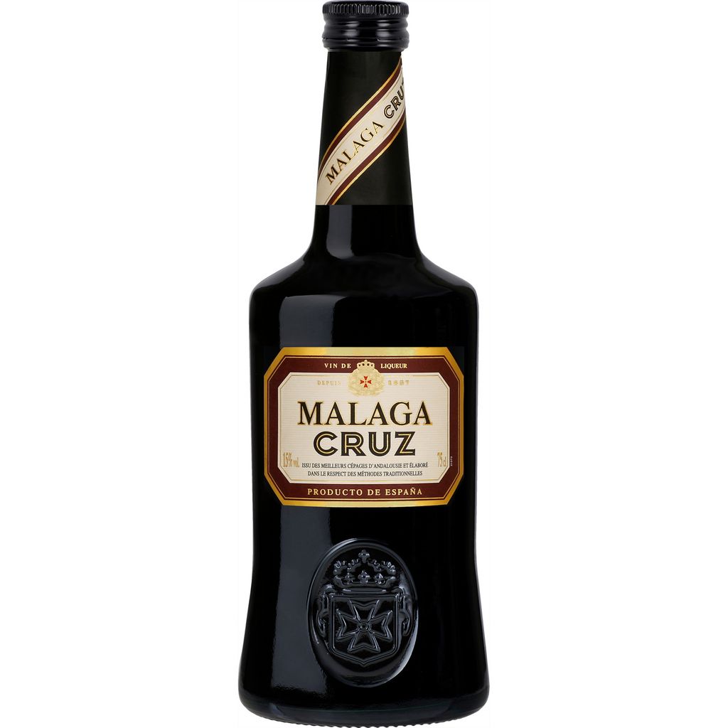 CRUZ Malaga est un vin liquoreux issu de cépages de la côte d'Andalousie. Il offre une belle robe acajou, des notes prononcées et légèrement fruitées de vanille et de noisette. Il se déguste à l'apéritif, pour accompagner les desserts ou en digestif. Les vins de Malaga sont issus des vignobles d'Andalousie, dans la région de Malaga, au sud de l'Espagne, à partir principalement des cépages Moscatel et Pedro Ximénez. L'une des phases spécifique de leur élaboration est le vieillissement en foudre dans des « soleras », système de vieillissement typique espagnol qui consiste en un empilement de barriques sur plusieurs hauteurs.