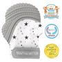 Petite mitaine pour bébé avec bout en silicone texturé permattent le massage des gencives en période de poussée dentaire. Dès 3 mois