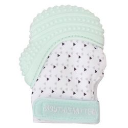 Petite mitaine pour bébé avec bout en silicone texturé permattent le massage des gencives en période de poussée dentaire. Dès 3 mois