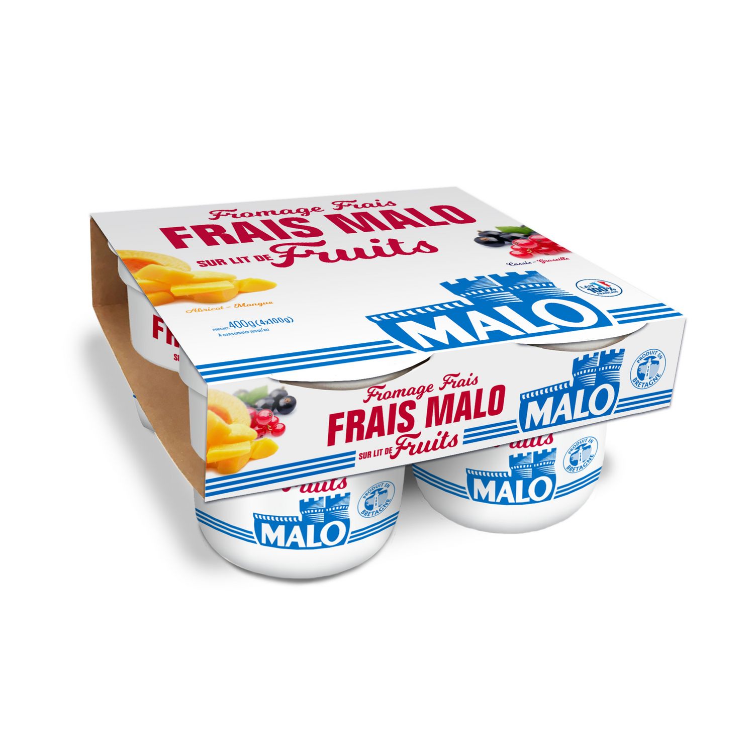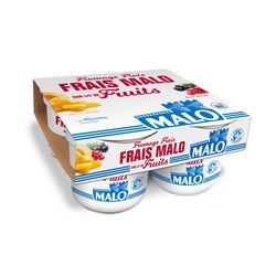 Le véritable fromage frais MALO, égoutté en sac en toile. Le goût et la texture uniques du fromage frais MALO, sur un coulis de fruits intense saveurs Abricot-Mangue et Cassis-Groseille. L'authenticité à chaque cuillère !