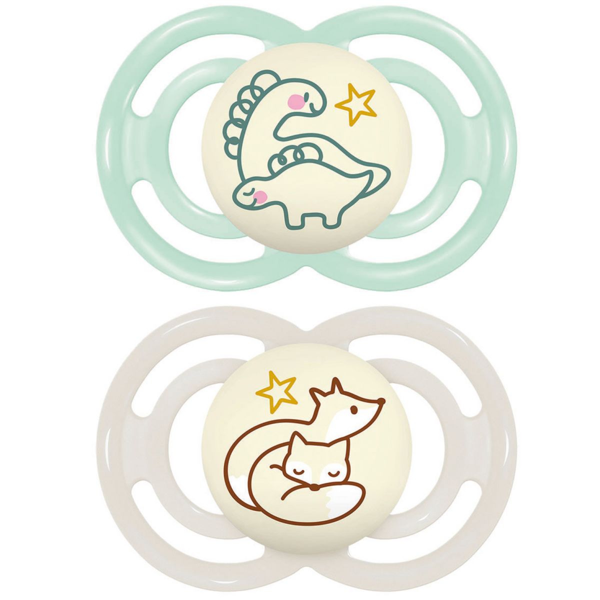 MAM Sucette Perfect Nuit - 6+m - Décor - Silicone - Bte stérilisation X2