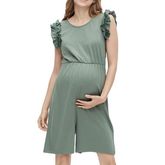 Optez pour cette combinaison maternité de la marque Mamalicious Combishort de grossesse sans manchesEncolure dégagée devant et dans le dosVolants aux épaulesLigne de coupe froncée au-dessus du ventreTissu stretchComposition : 48% Coton, 48% Modal, 4% Élasthanne