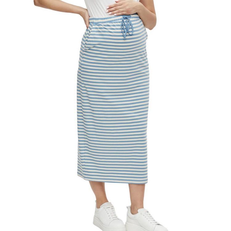 Optez pour cette jupe de la marque Mamalicious Coloris : blanc, bleuTaille élastiqueComposition: 100% viscoseMotifs rayures