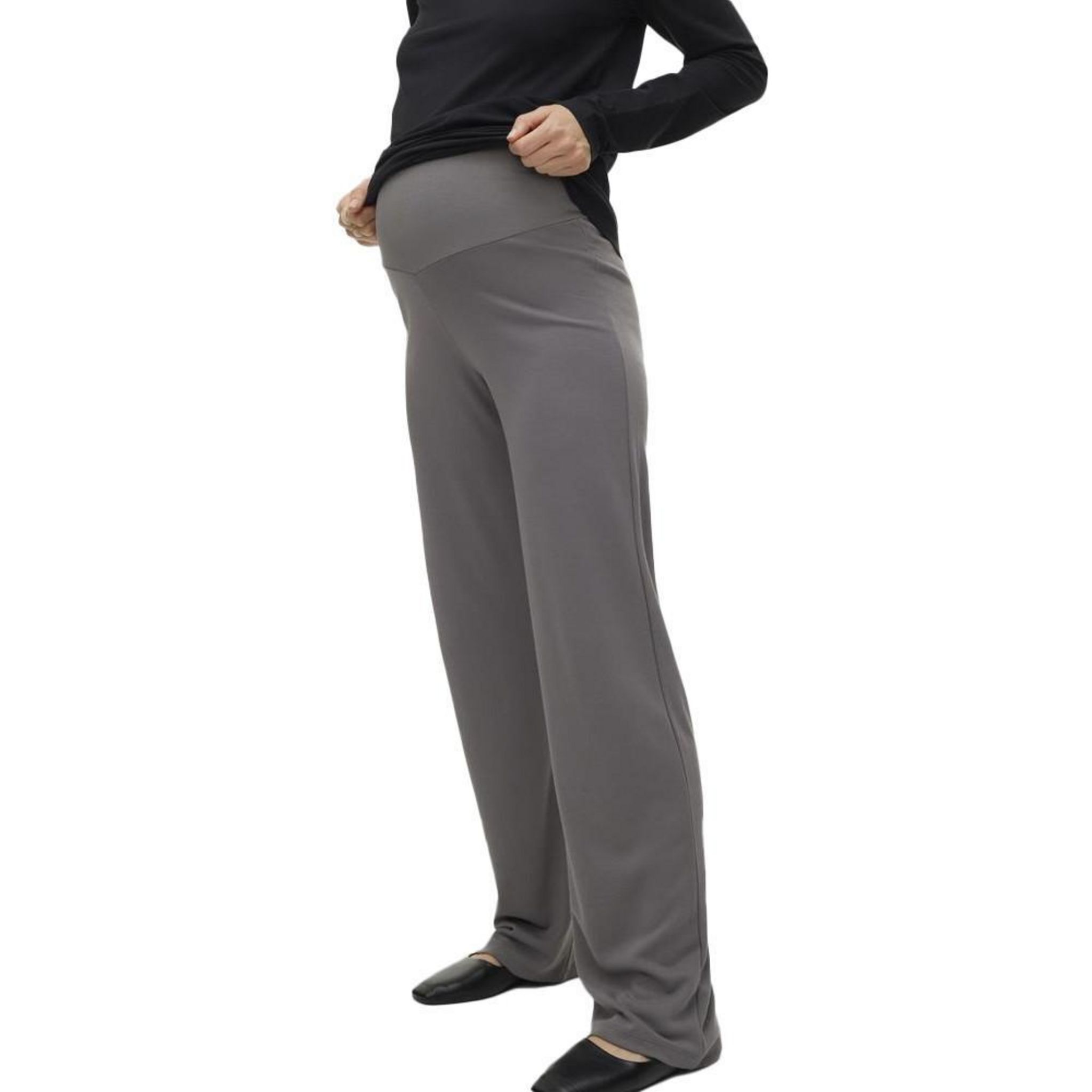 Craquez pour le pantalon de la marque MAMALICIOUS ! Coloris : Gris Taille haute Taille élastique Bandeau de soutien pour plus de confort.Coupe : Straight FitComposition : 66% Viscose 30% Polyester 4% Élasthanne