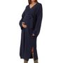 Optez pour cette robe de maternité de la marque MAMALICIOUSColoris : marineCol V Manches longuesComposition : 66% polyester reyclé, 27% polyester, 5% laine, 2% élasthanneNouée par une ceinture