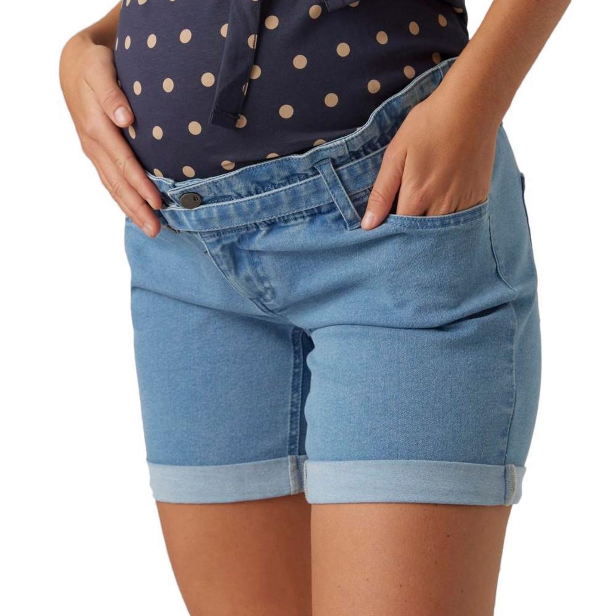 Craquez pour le short de grossesse de la marque MAMALICIOUS !- Coloris : Bleu- Short en jean- Attache ceinture- Poches arrières- Taille basse- Ourlets repliés- Ceinture à la taille, Ceinture paperbag avec ceinture- Coupe Régulière- Composition : 70% Coton, 28%Polyester, 2% élasthanne