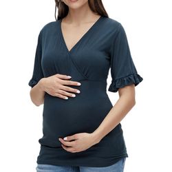 Craquez pour le t-shirt de la marque MAMALICIOUS ! Coloris : MarineCol V Manches longues Tissu uni Composition : 90% Viscose, 10% Élasthanne
