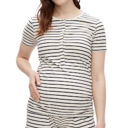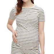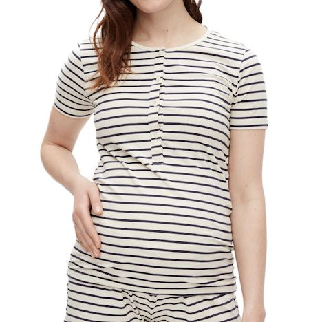 Optez pour ce t-shirt de maternité de la marque MAMALICIOUS- Coloris : beige, noir- Manches courtes- Col rond- Composition : 95% coton, 5% élasthanne