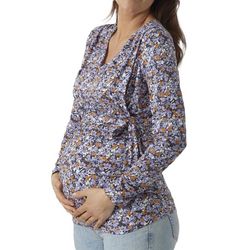 Craquez pour le t-shirt de la marque MAMALICIOUS ! Coloris : Mauve Col V Manches longues Tissu imprimé Noué sur le devant Composition : 80% Viscose, 10% Polyester, 10% Élasthanne