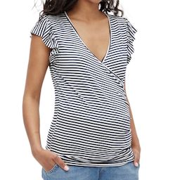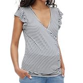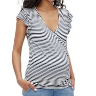 Optez pour ce t-shirt de maternité de la marque MAMALICIOUS- Coloris : Blanc, Noir- Manches courtes- Composition : 62% viscose, 30% polyester, 8% élasthanne- Col V- Motifs imprimés rayures