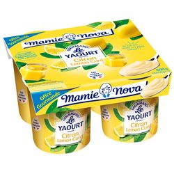 "So British"! Ce yaourt gourmand et crémeux est agrémenté d'une crème de citron douce et onctueuse aux notes pâtissières qui vous rappelleront Big Ben et Windsor. Mamie Nova, il n'y a que toi qui me fais ça ! Yaourt brassé sucré, aux fruits