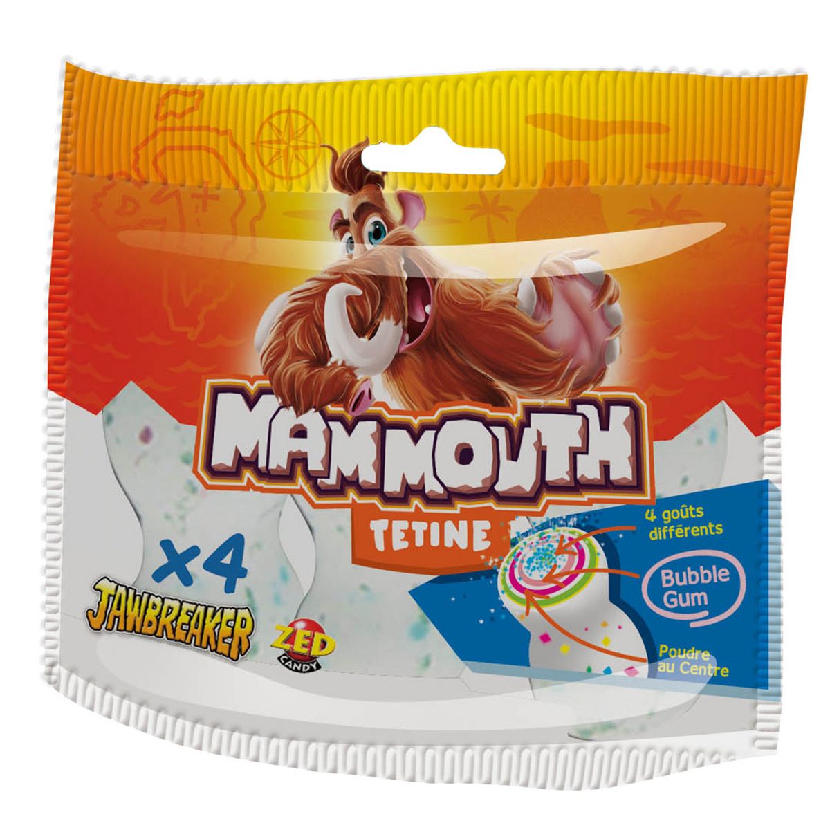 Le bonbon bubble gum en forme de tétine qui réunit 4 parfums successifs avec au centre un bubble gum fourré de poudre acidulée.