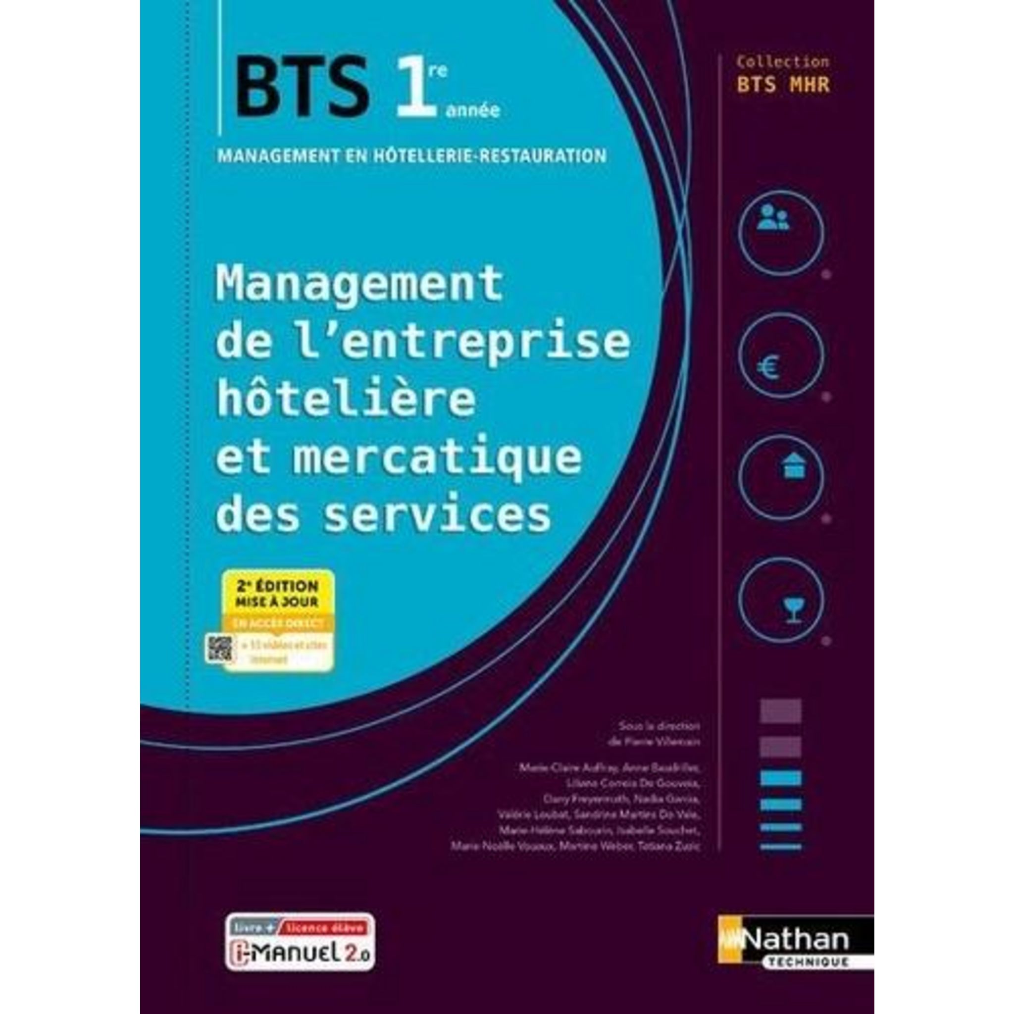 Cet ouvrage de Management de l'Entreprise Hôtelière et Mercatique des Services (MEHMS), couvre l'ensemble du référentiel 1re année du BTS MHR. Ce consommable propose une approche pédagogique active par des mises en situation qui placent l'étudiant dans un contexte professionnel. Il est proposé au choix en livre papier + licence numérique i-Manuel ou en 100% numérique i-Manuel. En version imprimée, cet ouvrage propose en complément une licence numérique i-Manuel 2. 0, la solution pour mettre les élèves en activité sur ordinateur ou sur tablette. En cas de prescription à l'ensemble de la alte (20 élèves minimum), l'activation de la licence élève est laissée au libre choix de l'enseignant. L'ouvrage de MEHMS de 1ère année a été actualisé en tenant compte des nouvelles tendances et des nouveaux enjeux du secteur : développement des foodcourts, expérience client personnalisée, bilan carbone obligatoire, etc. Points forts : Une présentation complète et concrète Des contextes de travail variés et réalistes . Des ressources, accessibles par QR Codes , permettent aux étudiants d'approfondir leurs connaissances : vidéos, liens vers des sites de référence, etc.