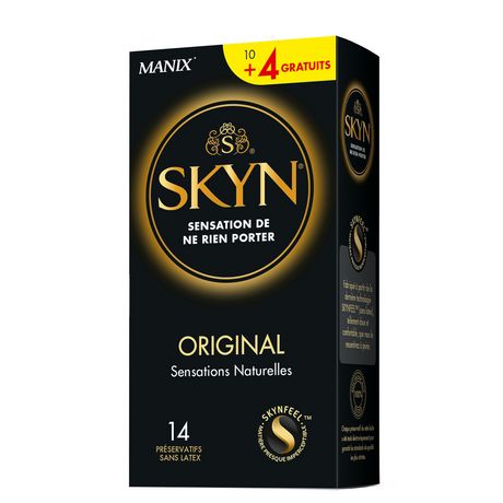 LE PRÉSERVATIF NOUVELLE GÉNÉRATION CECI N’EST PAS QU’UNE BOÎTE DE PRÉSERVATIFS. Ceci est un concentré d’innovation technologique qui favorise l’intimité de l’expérience sexuelle. La matière SKYNFEEL™ est ultra-douce et confortable afin de restituer des sensations plus naturelles et plus intenses. CECI EST L’ABOUTISSEMENT DE LA SENSATION DE NE RIEN PORTER.•PRÉSERVATIF FORME DROITE (AVEC RÉSERVOIR) •GEL ULTRA LUBRIFIANT À EFFET LONGUE DURÉE •MATIERE DOUCE SANS LATEX •ULTRA RÉSISTANT •COULEUR NATURELLE •LARGEUR NOMINALE 53MM MANIX - SKYN ORIGINAL -10 + 4 GT