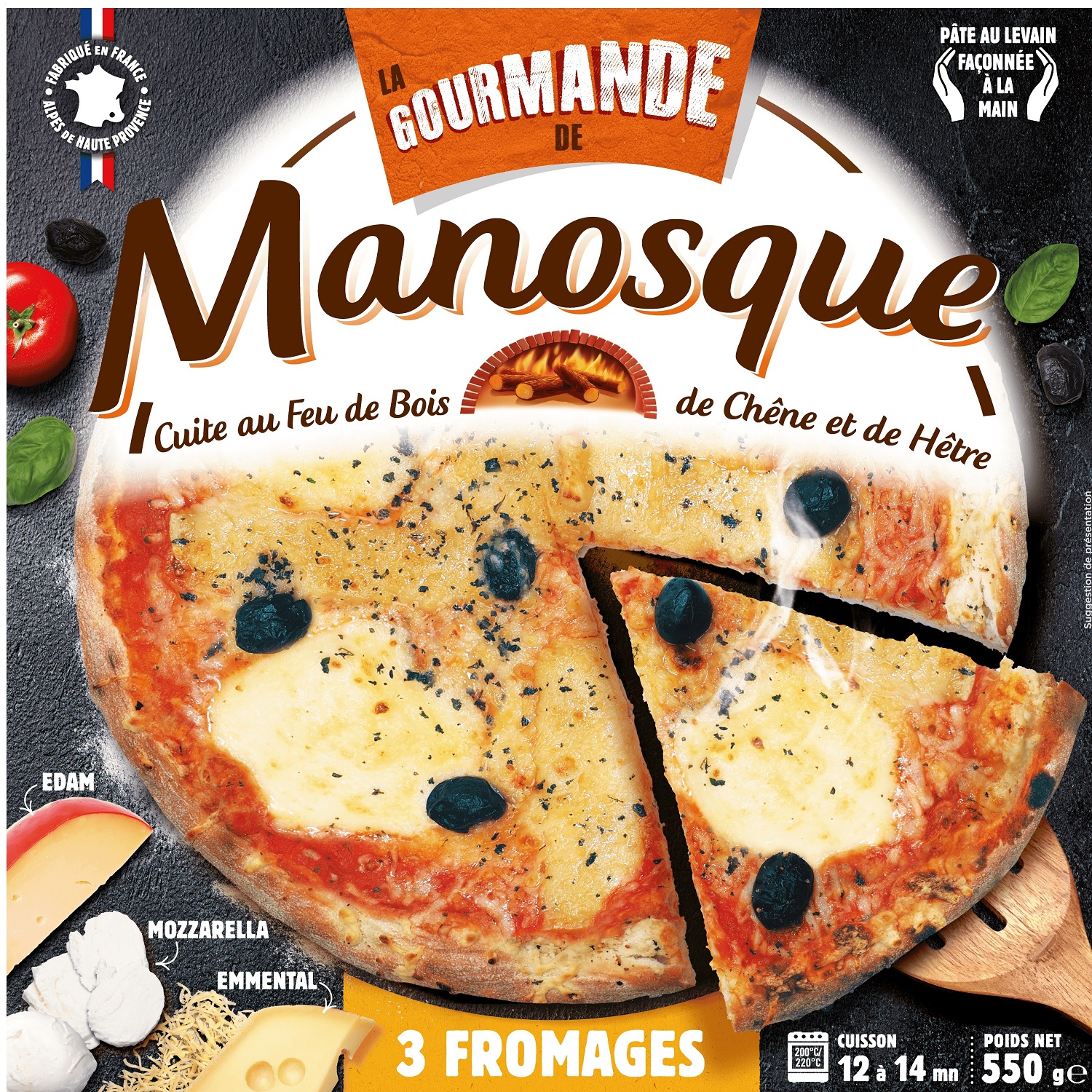 PIZZA 3 FROMAGES GOURMANDE 550 G PIZZA DE MANOSQUE