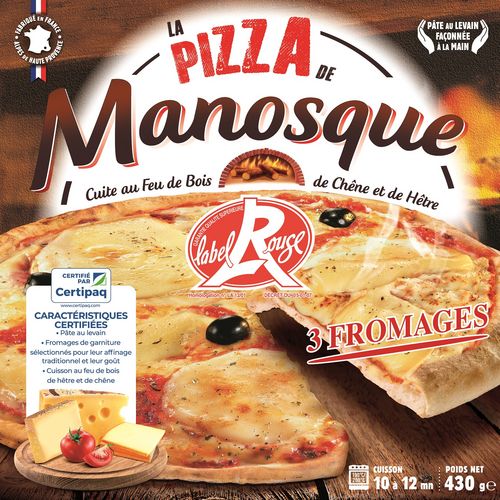 Pizza 3 fromages Label Rouge cuite au feu de bois