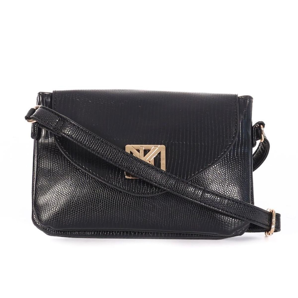 Optez pour ce sac à bandoulière Manoukian à prix bas !- Composition : 100% Polyester- Détail doré- Dimension : 22x15cm- Bandoulière réglable- Coloris : Noir