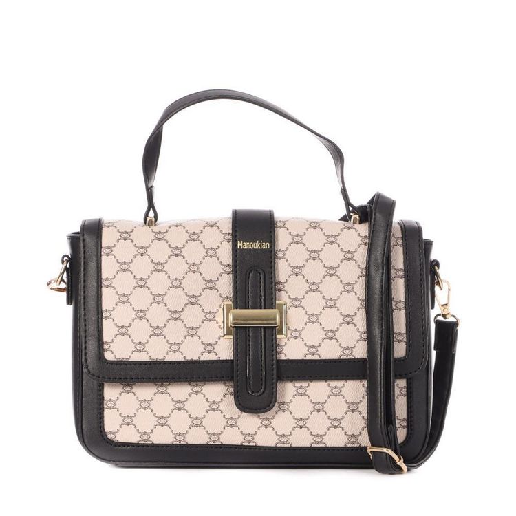 Sac bandoulière femme de la marque Manoukian Sangle bandoulière réglableFermeture à rabat1 compartiment Coloris : noir/Écru Synthétique Dim : 26 x 18 x 7 cm