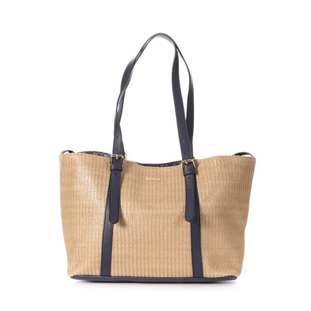 Optez pour ce sac de la marque Manoukian ! Coloris : marine, marron 2 anses Dimensions : 39x26x10cm Poche intérieur