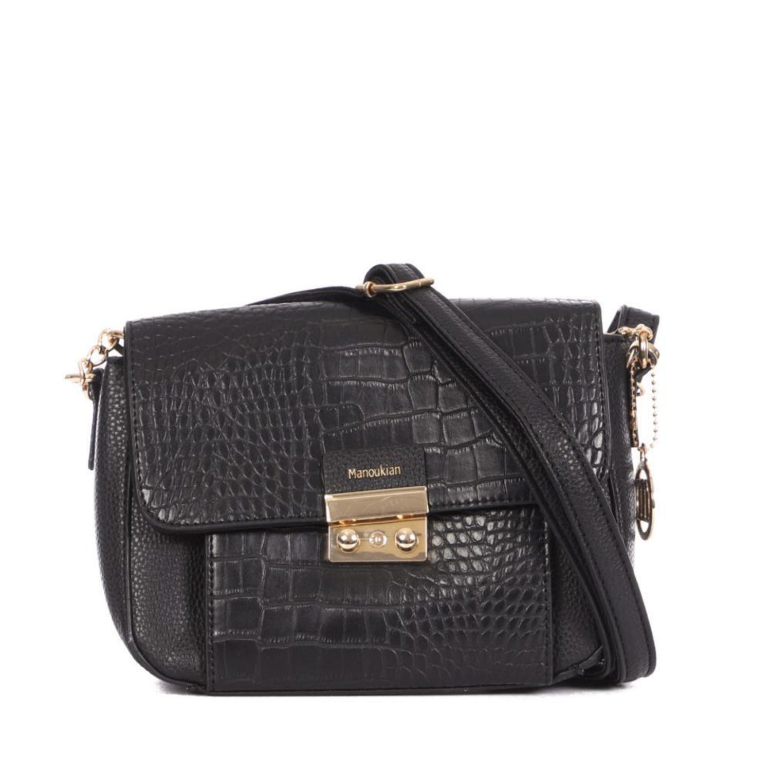Craquez pour le sac bandoulière femme de la marque Manoukian Coloris : Noir Fermeture à rabat et clip Bandoulière ajustable et amovible 1 anse 1 compartiment Synthétique Dim : 24 x 18 x 10cm